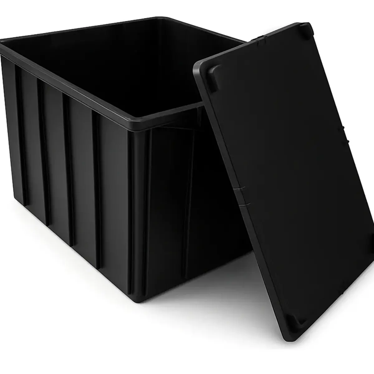 Fabricada em polietileno de alta densidade (PEAD), a caixa possui alta durabilidade e resistência a impactos, umidade e variações de temperatura. Seu design empilhável permite melhor organização e economia de espaço quando não está em uso.