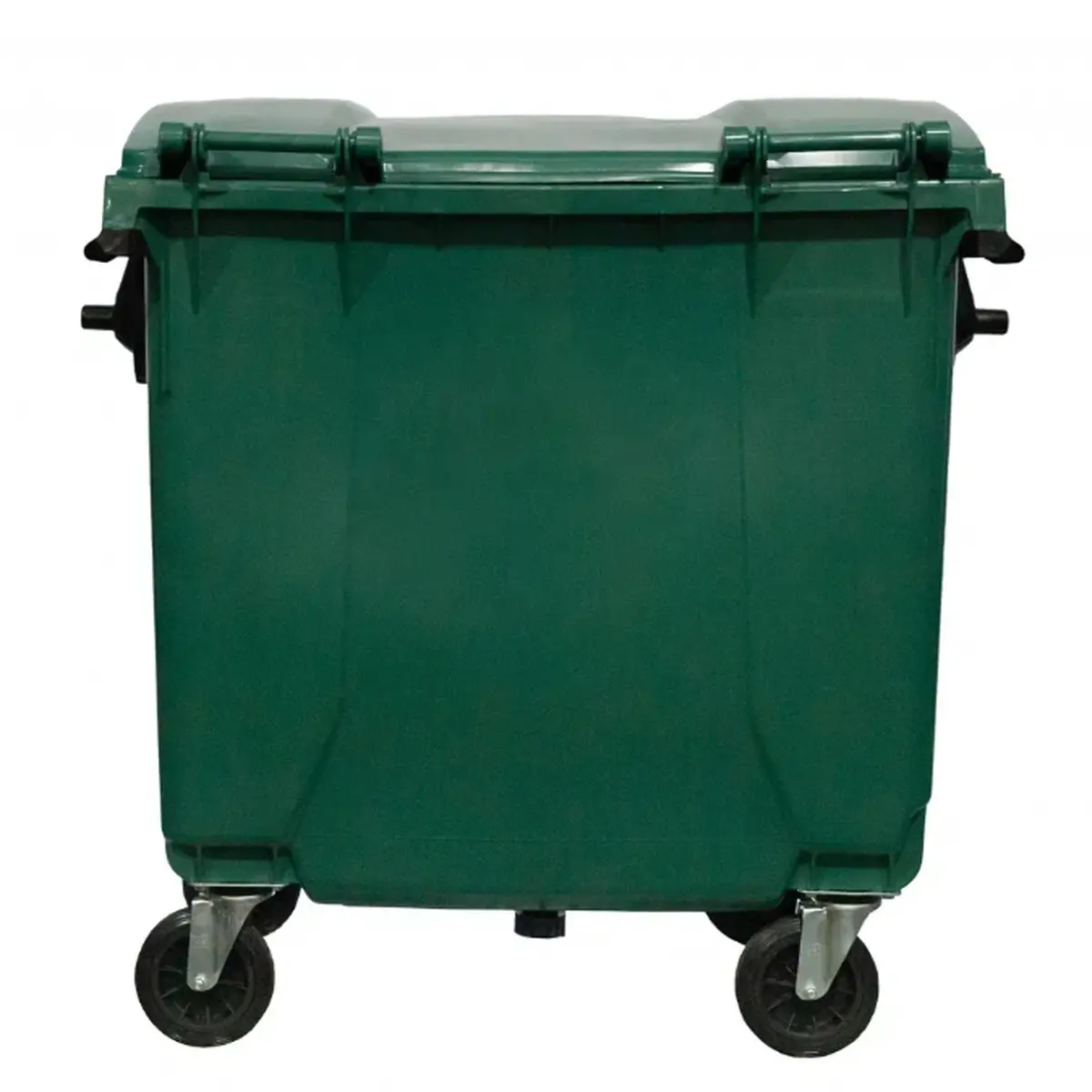 Container de lixo com capacidade de 1000 litros, fabricado em polietileno de alta densidade (PEAD) ou polipropileno (PP), oferecendo alta resistência, durabilidade e segurança.